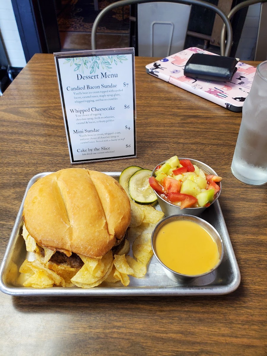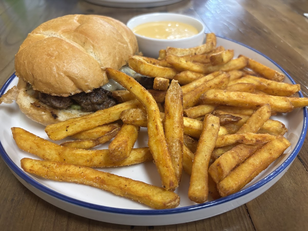 Good restaurant that has potential. Great menu idea just needs a little tweaking. The Spicy Guac burger didn’t have fresh avocado, it was bitter and old. The Spicy Guac burger also didn’t have any spice to it. Would be better if it had a healthy amount of jalapeños to live up to its name. The Donut burger had a stale donut. A part of the donut was hard and not easily chewable. The fries were good. They do offer beer cheese as part of sauce for your fries. May possibly try again to see if it was a one off thing with the food. Spent $38.00 for two burgers with fries and water to drink.